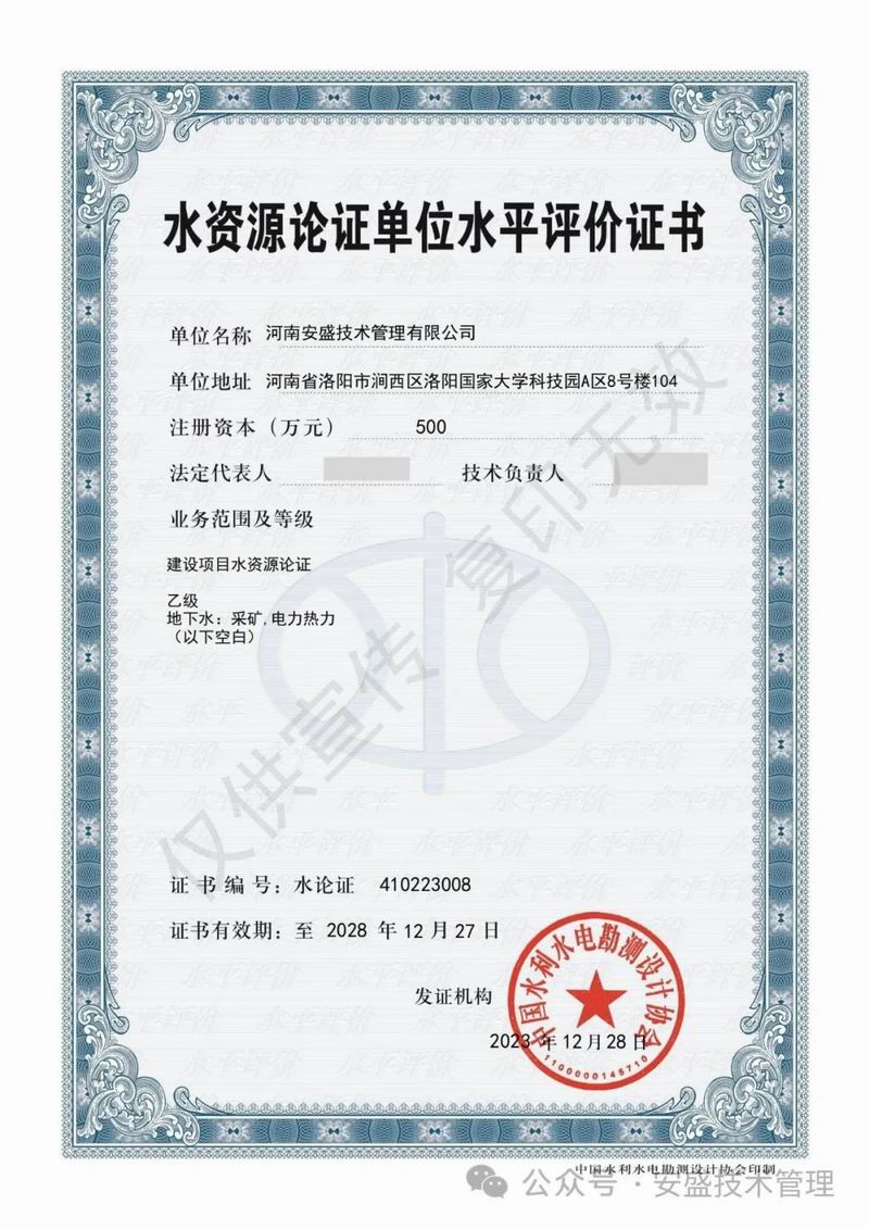 熱烈祝賀我司榮獲水資源論證單位水平評價乙級證書